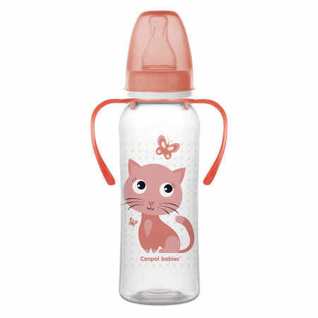 Canpol babies Fľaša s úzkym hrdlom a držadlami 250 ml CUTE ANIMALS ružová
